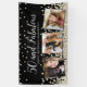 Elégant design de bannière d'anniversaire personnalisé avec des confettis d'or et d'argent sur un arrière - plan noir, typographie de script moderne avec les mots "50 et Fabulous" (en argent), "Joyeux anniversaire" avec votre nom personnalisé (en argent), et trois de vos photos préférées encadrées en carrés de feuille d'argent métallique.
