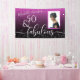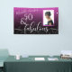 Bannière de soirée 50e anniversaire élégante et élégante fausse parties scintillant rose chaud avec script de calligraphie manuscrit blanc et effet brillant noir sur le dos. PG & Co ©. Personnalisez cette bannière avec le nom et la photo de la fille d'anniversaire.
