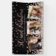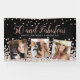 Elégant design de bannière d'anniversaire sur mesure avec l'or rose et l'argent confetti sur un arrière - plan noir, typographie de script moderne avec les mots "50 et Fabulous" (en or rose), "Joyeux anniversaire" avec votre nom personnalisé (en argent), et trois de vos photos préférées encadrées en carrés de feuille d'or rose métallique.