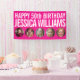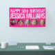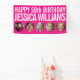 Gras simple graphique rose chaud et blanc six modèle photo bannière de 50e anniversaire. Personnalisez cette bannière d'anniversaire avec les détails de votre fête d'anniversaire, et cinq photos différentes de votre fille d'anniversaire dans les cercles de photos idéal pour une photo de chaque décennie. D'autres années couleurs et articles correspondants sont disponibles et peuvent être créés sur demande. © Design original par Sarah Trett pour www.mylittleeden.com sur Zazzle.