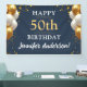 Célébrez en style avec notre 50e anniversaire de la Marine Bleue et l'or bannière de célébration! Cette bannière élégante est conçue avec un arrière - plan noir frappant accentué par des détails dorés chatoyants, créant une ambiance luxueuse et festive. Parfait pour une célébration d'étape, il dispose d'un texte personnalisable pour honorer l'invité d'honneur, ajoutant une touche personnelle à la décoration. Idéal pour les ambiances intérieure et extérieure, cette bannière durable fait une déclaration tout en donnant le ton pour une célébration inoubliable.