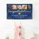 Ajoutez une touche d'élégance à votre grande fête grâce à notre bannière personnalisable ! Doté d'un arrière - plan bleu tendance qui peut être changé pour s'adapter à votre décor, d'un collage de 5 photos pour mettre en valeur les moments brillants de votre diplômé, et d'un arrosage de parties scintillant dorée pour ce pétillant supplémentaire. Parce que votre diplômé mérite le meilleur.