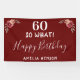 60 Alors quelle Bannière de la fête du 60e anniversaire du Rose d'aquarelle rouge. Inspirationnelle et drôle de citation 60 Alors que sur un arrière - plan rouge. Le design a des roses d'aquarelle et des brindilles. Personnalisez avec votre nom et votre âge et faites votre propre bannière de fête d'anniversaire unique. Idéal pour une femme qui fête le soixantième anniversaire et qui a un sens de l'humour.