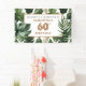 Bannière moderne de fête du 60e anniversaire, avec une aquarelle verte feuillage tropical avec cadre en cuivre et ballons en feuille de cuivre "60" avec un message de bienvenue et le nom de la personne. Parfait pour un anniversaire tropical, de plage ou de jardin. Objets correspondants et autres âges disponibles.