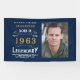 Dites Joyeux Anniversaire. Ajoutez votre nom, votre année et votre photo à cette bannière d'anniversaire personnalisée. Un magnifique design d'anniversaire bleu sur mesure avec typographie de style vintage blanc et or. Plus de cadeaux et de fournitures de fête disponibles avec le design "légendaire" dans le magasin.