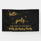 Bannière élégante et moderne pour une fête du 60e anniversaire. Fond noir et texte faux or écrit avec un script de style à la main tendance : bonjour soixante. Avec des points dorés comme décor. Modèles pour le nom et le texte : Bienvenue à .... lettres d'or. Vous pouvez modifier la couleur de l'arrière - plan pour qu'elle corresponde à votre thème. Cliquez sur personnaliser, puis sur "sélectionner une couleur arrière - plan" à droite.