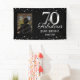 Bannière noire élégante de 70e anniversaire avec texte ajustable Happy Birthday et Custom Name Text. Choisissez votre photo préférée et téléchargez! Faux foil de confetti argent et 70 nombre.