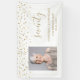Aidez-la à fêter son 70e anniversaire en style avec cette bannière simple mais élégante, avec des faux feuilles d'or, des confettis triangulaires sur sa photo et le mot "soixante-dix" en caractères d'écriture dorée sur un arrière - plan blanc. Remplacez facilement l'exemple d'image par une photo de votre choix. Personnalisez le texte avec le nom de l'honneur en or sans serif police, ainsi que l'occasion et la date ci-dessous en or plus petit type.