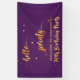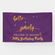 Bannière élégante et moderne pour une fête de 70e anniversaire. Fond violet féminin et texte doré faux écrit avec un style d'écriture manuscrite tendance : bonjour soixante-dix. Avec des points dorés comme décoration. Modèles pour le nom et le texte : Bienvenue à …. lettres dorées. Vous pouvez changer la couleur de fond pour correspondre à votre thème. Cliquez sur personnaliser puis "sélectionner une couleur de fond" sur votre droite.