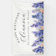 Elégante aquarelle d'été fleurs de larkspur bleu créent une belle bordure florale au bas de cette joyeuse bannière d'anniversaire. Les fleurs de larkspur ou de delphinium sont la fleur de naissance de juillet. Une combinaison de polices à la mode lui confère une esthétique moderne. Tout le texte est modifiable.