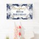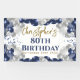 Banderole de la fête du 80e anniversaire de la Marine et du ballon d'argent magnifique. Ce fabuleux design est la meilleure façon de féliciter quelqu'un pour son quatre-vingts anniversaire (ou n'importe quel âge !). Personnalisez avec notre propre nom personnalisé. Typographie bleu et or et somptueux ballons bleu marine et argent.