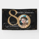 80e anniversaire Elegant Gold Calligraphy Black Photo Bannière. Et élégamment conçu invitation spéciale fête d'anniversaire, avec une photo personnalisée de personne d'anniversaire et de calligraphie script avec des éléments florissants vintages. Assez simple pour s'adapter à une variété de thèmes et de couleurs ! Besoin d'aide ? Contactez-moi !