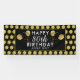 Faites-la sentir spéciale et surprenez-la avec cette bannière de fête du nom des Pois noirs et d'or du 80e anniversaire. Ce design moderne, féminin et élégant a un arrière - plan noir extérieur avec un motif pointillé de polka en faux or. Le centre a "Happy 80th Birthday" en écriture de script de calligraphie suivie par nom personnalisé.