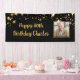 Célébrez n'importe quel anniversaire d'âge (montré pour un 80e anniversaire) pour lui avec ce panneau photo couleur personnalisée avec une bordure d'étoiles or et personnalisée avec des images et votre texte personnalisé (l'exemple suggère HAPPY # NOM d'ANNIVERSAIRE dans un script moderne et de calligraphie éditable) montré sur un arrière - plan noir modifiable. L'échantillon est affiché dans une bannière intérieure de 2,5x6' : d'autres tailles ou option "extérieure" sont disponibles sur la page de commande. ASSISTANCE : Pour obtenir de l'aide sur la modification/la personnalisation de la conception, le changement de couleur, le transfert de la conception vers un autre produit ou si vous souhaitez coordonner des éléments, contactez le concepteur AVANT DE COMMANDER via l'onglet MESSAGE Conversation Zazzle ou par courriel à l'adresse makeitaboutyoustore@gmail.com.