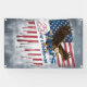 A bold, distressed illustration of a soaring bald eagle combined with vintage American symbolism. The worn textures and retro style evoke strength, freedom, and resilience, inspired by classic poster art.