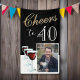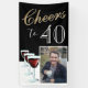 Tchin pour 40 Bannière de 40e anniversaire avec photo et vin rouge élégant. Trois verres à vin rouge, typographie tendance en blanc et or sur fond noir. Personnalisez le décor avec votre photo et votre âge.