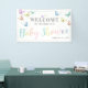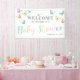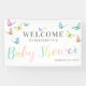 Baby shower papillon coloré accueil bannière avec un arrière - plan blanc uni qui peut être changée en n'importe quelle couleur, papillons pastel couleur arc-en-ciel tendance, et un modèle texte moderne facile à personnaliser.