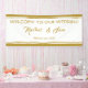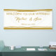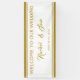 Ajoutez cette élégante bannière de réception de mariage à vos accessoires de réception. Conçu avec le texte : Bienvenue à Notre Mariage, les Noms et Mariages de la mariée et de la chambre; et décoré avec des bandes d'accent de couleur or haut et bas. Pour personnaliser, insérez simplement votre texte dans notre modèle facile, en remplaçant les noms et la date des exemples. N'oubliez pas de consulter la collection de Mariages encadrés d'or Elegant pour les articles de papeterie et les accessoires correspondants.