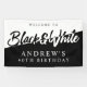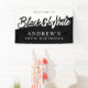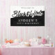 Bannière de bienvenue noir et blanc élégante. Le thème de la fête en noir et blanc est si amusant et versatile qu'il est parfait pour de nombreux types de fêtes. Customisez cette bannière de fête avec votre nom et tout autre message personnalisé que vous souhaitez inclure!