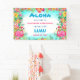 Cette bannière amusante Aloha graduation présente des fleurs tropicales d'hibiscus, des flamants roses, et est personnalisée avec vos informations. Parfait pour accueillir les invités à votre fête de remise des diplômes ! Invitations correspondantes et fournitures de fête disponibles. Design©Rosalind Moore, Cherry Lane Designs.