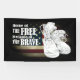 "Accueil des Libres, à cause des Braves" bannière 3'x5'. On y trouve des bottes de soldat au crayon sur un arrière - plan du drapeau américain.