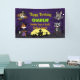 Faites de l'anniversaire de votre enfant une fête à la mode avec cette jolie bannière. Il présente des animaux de la forêt de caricatures modernes habillés de costumes amusants et éffrayants que les enfants vont adorer. Vous pouvez le personnaliser avec le nom et le message de votre enfant afin de rendre la célébration encore plus spéciale. Parfait pour les fêtes d'anniversaire d'Halloween, cette bannière ajoute une touche magique pour les petits qui aiment le plaisir mignon et éffrayant.
