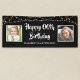 Célébrez n'importe quel anniversaire d'âge avec cette décoration personnalisée de bannières de couleurs avec deux photos de lui ou elle, des lumières à cordes d'or et votre texte personnalisé (l'exemple montre HAPPY # BIRTHDAY NAME) dans votre choix de styles de police, de couleur de texte et de couleur arrière - plan (avec le texte blanc sur le noir). MODIFICATIONS : Modifiez le style de police et la couleur dans EDIT. OPTIONS BANNIÈRES : L'échantillon est présenté en 2,5x6'; d'autres tailles sont disponibles sur la page de commande ainsi que l'option de transférer la conception à une planche en mousse, une affiche, une tapisserie ou un autre produit ou de faire convertir le concepteur à un fichier de TÉLÉCHARGEMENT NUMÉRIQUE pour impression locale AVANT de commander. ASSISTANCE : Pour obtenir de l'aide sur la modification ou la personnalisation de la conception, le changement de couleur, le redimensionnement, le transfert de la conception à un autre produit ou si vous souhaitez coordonner des éléments, contactez le concepteur AVANT de commander par Zazzle Conversation ou par courriel makeitaboutyoustore@gmail.com.