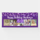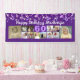 Célébrez votre anniversaire d'âge avec une photo collage personnalisé de bannière violet avec 12 photos carrés de souvenirs de photos à travers les années et votre texte et votre âge personnalisés avec des banderoles, des confettis et des lumières scintillantes. L'exemple montre HAPPY BANTHDAY NAME dans un script de calligraphie moderne et l'âge en blanc modifiable contre un arrière - plan violet modifiable. L'échantillon est affiché sur une bannière intérieure de 2,5x6', d'autres tailles ou "en extérieur" sont disponibles sur la page de commande. ASSISTANCE : Pour obtenir de l'aide sur la modification ou la personnalisation de la conception, le changement de couleur, le redimensionnement ou le transfert de la conception à un autre produit, contactez le concepteur AVANT DE COMMANDER via l'onglet MESSAGE Conversation Zazzle ci-dessous ou envoyez un courriel à makeitaboutyoustore@gmail.com.