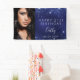 Célébration d'un 21e anniversaire (ou de tout âge) pour une fille/femme. Un arrière - plan bleu foncé. La couleur bleue est inégale. Décoré avec de la poussière de parties scintillant imitation. Personnalisez et ajoutez votre propre photo de la fille d'anniversaire. Utilisez une photo verticale/portrait. Le texte : Le nom en gris avec un script de style à la main moderne. Personnalisez et ajoutez un nom, 21 ans et une date. Peut être utilisé à la fois comme bannière de bienvenue ou décoration murale de fête.