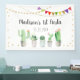 Cette mignonne bannière présente des succulents aquarelle avec des drapeaux de fiesta colorés et des confettis en feuille d'or.