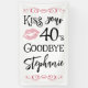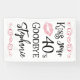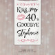 Amusant Anniversaire Embrasse Votre Décennie Adieu Bannière Personnalisée. Célébrez un anniversaire qui débute une nouvelle décennie avec cette bannière avec un design de typographie moderne de l'âge modifiable pour le dicton drôle KISS YOUR DECENNIE GOODBYE (l'exemple montre 40s pour un 50e anniversaire) et personnalisé avec votre texte personnalisé. CHANGEMENTS : Le style de police de texte personnalisé, la couleur, la taille et le placement ainsi que les graphiques et les couleurs arrière - plans peuvent être modifiés pour être coordonnés avec les couleurs de votre thème de fête. OPTIONS : L'échantillon est présenté en 3x5' sur le vinyle intérieur : d'autres tailles et le vinyle extérieur sont disponibles sur la page de commande ou le dessin peut être transféré sur une affiche, une planche en mousse, une tapisserie ou un autre produit ou converti par le concepteur en fichier de téléchargement numérique pour impression locale. ASSISTANCE : Pour obtenir de l'aide sur la modification ou la personnalisation de la conception, le changement de couleur, le redimensionnement ou le transfert de la conception vers un autre produit ou la conversion vers un fichier de téléchargement, contactez le concepteur AVANT DE COMMANDER via l'onglet MESSAGE Conversation Zazzle ci-dessous ou envoyez un courriel à makeitaboutyoustore@gmail.com.