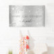 Une bannière pour une fête d'anniversaire girly et glamour de 30ème (ou tout âge). Un arrière - plan métallique à l'aspect faux argent avec de la poussière de parties scintillant faux argent. Le texte : Personnalisez et ajoutez un nom écrit en noir avec un script de style à la main moderne avec des swashes. Idéal à la fois comme bannière de bienvenue ou comme décor de fête. Pour que les swashes ne suppriment que le nom de l'échantillon, laissez les espaces ou émoticônes devant et après le nom.