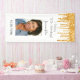 Une bannière verticale pour une fête d'anniversaire girly et glamour de 50ème (ou tout âge). Un arrière - plan blanc chic avec parties scintillant faux or goutte, la peinture goutte à goutte. Personnalisez et ajoutez une photo de la fille d'anniversaire. Texte : Modèles pour le texte, le nom et une date. Idéal à la fois comme bannière de bienvenue ou comme décor de fête. Le nom est écrit en noir avec un script de style écrit à la main.