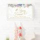 Célébrez n'importe quel anniversaire de mariage avec cette bannière florale personnalisée avec un élégant script de calligraphie or typographie design # YEARS INTO FOREVER (modifiable pour le nombre d'années de mariage) accentué avec l'or intervertissant coeurs liés et votre texte personnalisé. Un éventail de fleurs bleues, roses, pêche et blanches aux accents botaniques verts et dorés complètent de nombreux anniversaires. Contactez le concepteur via Zazzle Conversation ou makeitaboutyoustore@gmail.com si vous souhaitez modifier ce design, sur un autre produit ou pour coordonner des éléments.