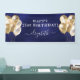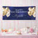 Pour une fête d'anniversaire de 21ème anniversaire (ou de n'importe quel âge). Un arrière - plan bleu marine. La couleur bleue est inégale. Décoré de ballons d'or. Personnalisez et ajoutez un nom et 21 ans. Lettres blanches. Le nom est écrit avec un script de style moderne écrit à la main avec des swashes. Pour que les swashes ne suppriment que le nom de l'échantillon, laissez les espaces ou émoticônes devant et après le nom.