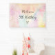 Cette jolie bannière d'anniversaire présente un arrière - plan d'aquarelle peint à la main dans des couleurs pastel avec des confettis d'or.