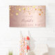 Une bannière pour une fête d'anniversaire girly et glamour de 50ème (ou tout âge). Un faux or rose, rose à l'aspect métallique arrière - plan avec des étoiles faux or qui goutte. Personnalisez et ajoutez un nom, une date et un âge de 50 ans. Le nom est écrit en or rose foncé avec un script de style moderne écrit à la main. Idéal à la fois comme bannière de bienvenue ou comme décoration murale de fête.