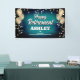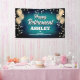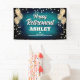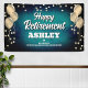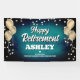 Fun banner sign for indoors or out, featuring festive gold metallic balloons on both sides of the design with sparkly, gold metallic confetti on a rich and bold aqua blue textured background for your personalized retirement party banner.
