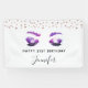 Une bannière d'anniversaire avec une belle aquarelle peinte en illustration. De beaux yeux et des sourcils pourpres, les yeux fermés, montrant de longs cils élégants. Faux confettis d'or rose le long du sommet.