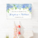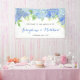 Cette bannière mariage présente un design hydrangée bleu aquarelle avec feuillage de feuilles vertes. Personnalisez-le avec les noms des mariés et des mariés. Des articles correspondants sont également disponibles. Visitez notre magasin ou consultez nos pages de collection pour voir la gamme complète.