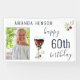 Verre Rouge Rose Aquarelle Photo 60th Birthday Banner. Le design est assorti d'un verre de vin rouge aquarelle, de roses et de brindilles. Le texte est entièrement personnalisable - personnalisez-le avec votre photo, nom et âge. C'est une grande scène de fête d'anniversaire pour une femme ou un homme.