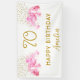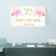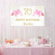 Aquarelle rose orchidée or Parties scintillant 70e anniversaire bannière. Surprise florale moderne 70ème anniversaire cadre avec belle orchidée rose aquarelle et parties scintillant faux or.