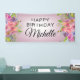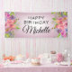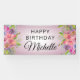 Bannière couleur violet et rose fleur sauvage "Joyeux anniversaire" pour filles ou femmes. Personnalisé avec le nom de l'invité d'honneur. Contactez-moi pour obtenir de l'aide sur la personnalisation ou pour demander l'appariement ou la coordination des produits Zazzle pour votre parti.