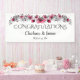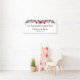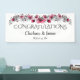 Ajoutez cette bannière pendante à vos accessoires de réception de mariage. Conçu dans des tons vifs de rouge canneberge, avec des branches florales foncées sur un arrière - plan blanc, le texte comprend : FÉLICITATIONS, et les prénoms de la mariée et de la chambre. Pour personnaliser, il suffit de remplacer l'exemple de Noms de mariée et de champignon en utilisant notre modèle facile.