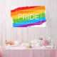 Cette oeuvre présente un arc-en-ciel coloré avec le mot Pride.