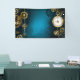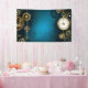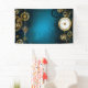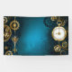 arrière - plan turquoise, texturé, steampunk avec laiton et or, clé en argent et horloge. Style Steampunk.