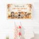 Soirée d'Anniversaire Bienvenue Bannière avec paysage d'automne et amis fureur d'automne dans les tenues d'automne. Bannière adorable aux couleurs chatoyantes d'automne avec des vibes de narration. Pas seulement pour le 1er anniversaire. Personnalisez facilement le texte. Visitez le magasin pour découvrir la gamme complète de produits disponibles - Kate Eden Art