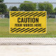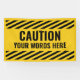 Customisez cette bannière Attention ou Avertissement avec arrière - plan traditionnel jaune vif et bandes diagonales pour signifier le danger. Modifiez le texte en mots dont vous avez besoin.
