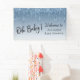 Une bannière de bienvenue élégante et luxueuse pour votre bébé garçon douche qui présente la fausse parties scintillant bleue qui coule du haut et "Oh Baby!" dans un script élégant contre un arrière - plan bleu ombre. Personnalisez avec le nom de la future mère.