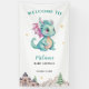 Bannière d'Affiche de bienvenue Baby shower de dragon aquarelle. Éléments correspondants disponibles.